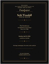 Join Us for a Fundraiser for Seth Woodall for NC House Hot dogs, hamburgers, live music, and a cash bar Join Us for a Fundraiser for Seth Woo... Set a Reminder Enter your email address below to receive a reminder message. Email address Select the amount of Days before the event -- Select Days Before Event -- 1 Day 2 Days 3 Days 1 Week Captcha Validation Please complete the Captcha Submit Date and Time Saturday Apr 18, 2026 6:30 PM - 9:30 PM EDT April 18, 2026 6:30 PM- 9:30 PM Location The Farmhouse 912 Bethlehem Church Road Eden, NC 27288 Set a Reminder Enter your email address below to receive a reminder message. Email address Select the amount of Days before the event -- Select Days Before Event -- 1 Day 2 Days 3 Days 1 Week Captcha Validation Please complete the Captcha Submit Share × Print Email Add to Calendar Facebook Twitter LinkedIn Tell a Friend × Select Calendar Type × Google Yahoo iCal (Outlook, Apple, or other)